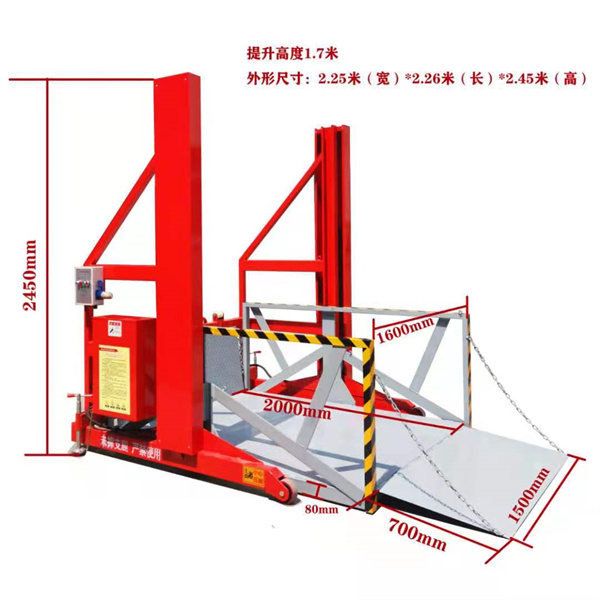 4.卸貨平臺底架下設有緩沖 橡膠墊,在平臺下降到地面時起到緩沖作用減小沖擊;