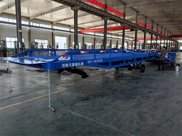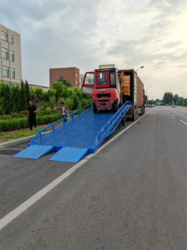 移動式液壓登車橋是與叉車配合使用的貨物裝卸輔助設(shè)備,可根據(jù)汽車車廂的高低調(diào)節(jié)高度,叉車可以直接通過本設(shè)備駛?cè)胲噹麅?nèi)部進行貨物的批量裝卸,僅需單人作業(yè),即可實現(xiàn)貨物的快速裝卸。它使企業(yè)減少大量勞力,提高工作效率,獲取更大經(jīng)濟效益
