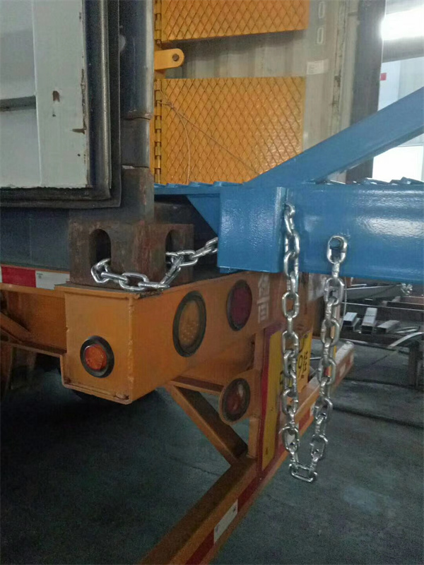 二、可調(diào)節(jié)長度的索鏈能方便地鉤住貨車,使登車橋與貨車始終緊密貼合。